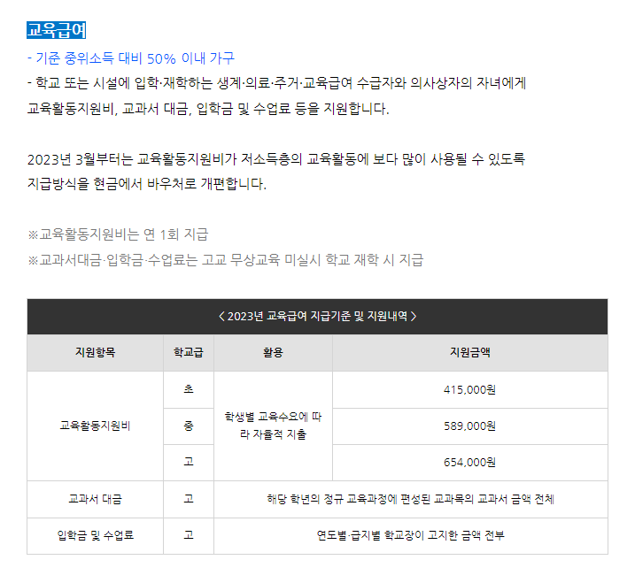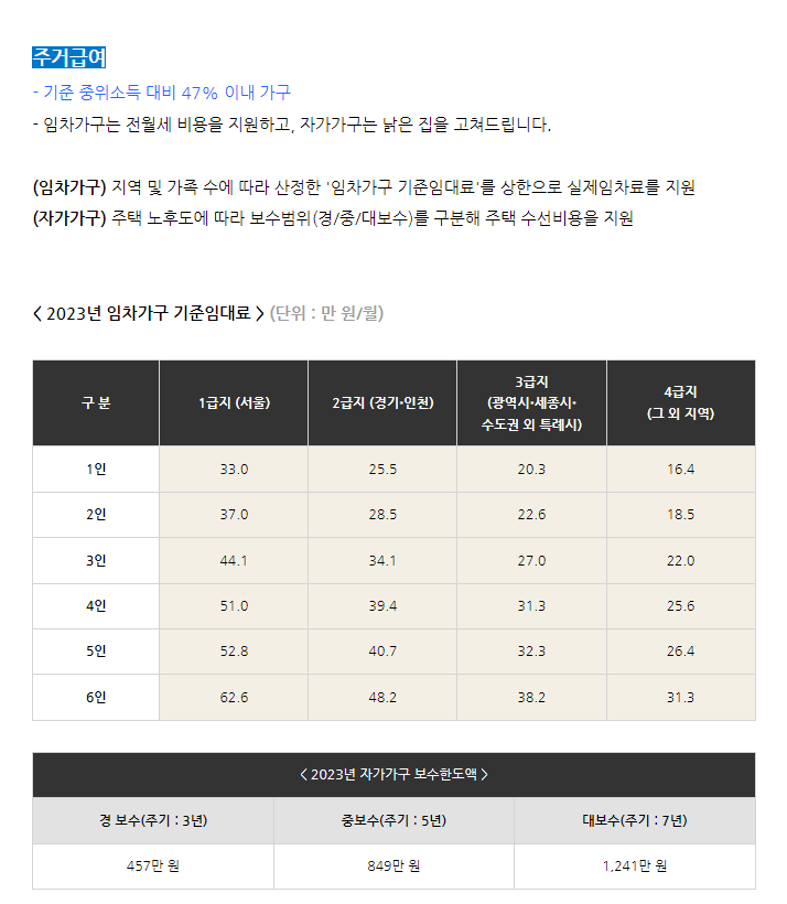 2023년 복지수급자 선정기준